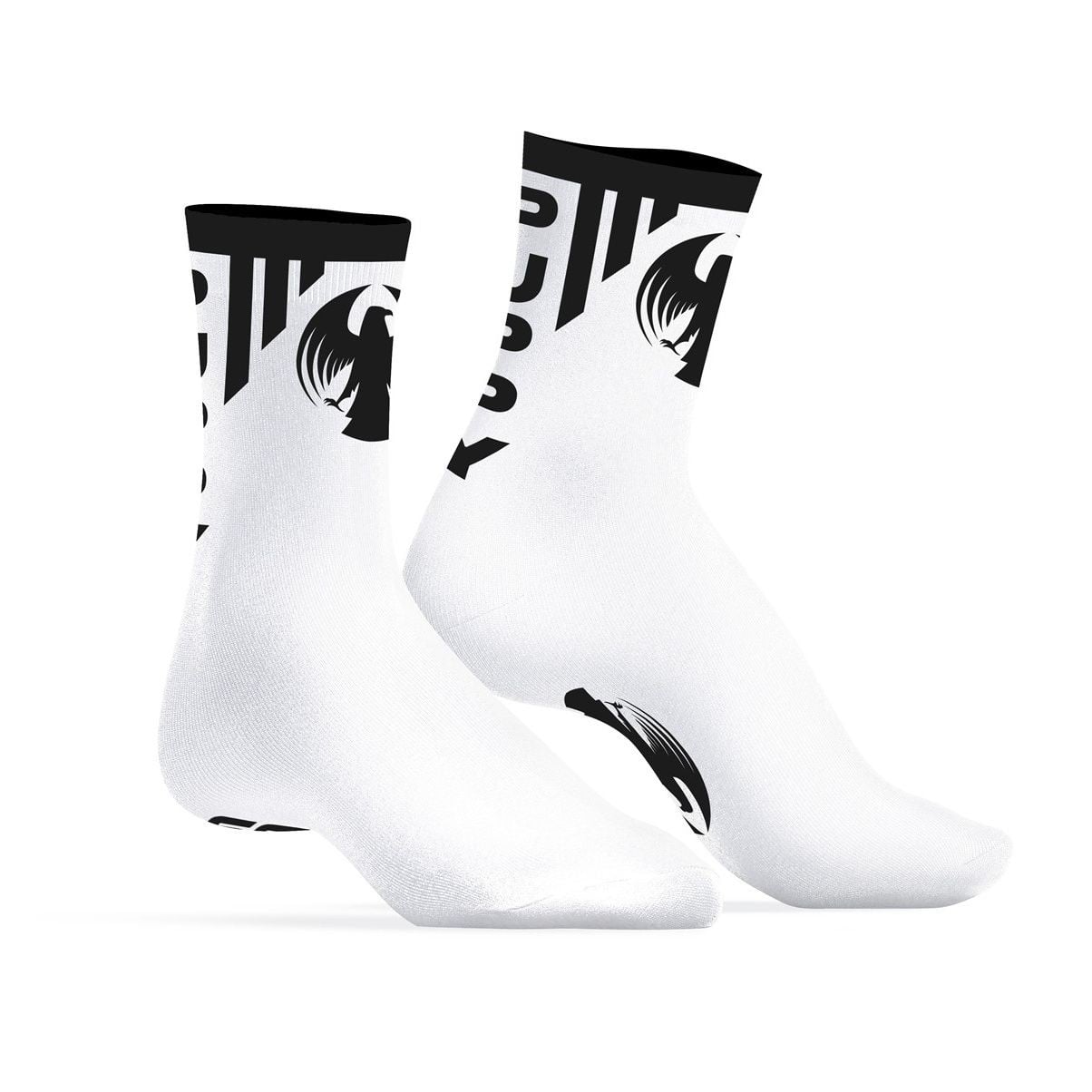 Tieto pohodlné biele ponožky sú zdobené nápisom PUPPY v kontrastnej čiernej farbe na zadnej strane. Logo festivalu Beyond Darklands nájdete na bokoch a chodidle. Sú ideálne na doplnenie vášho outfitu na tento festival, ale môžete ich nosiť aj na iné udalosti alebo na bežné nosenie.