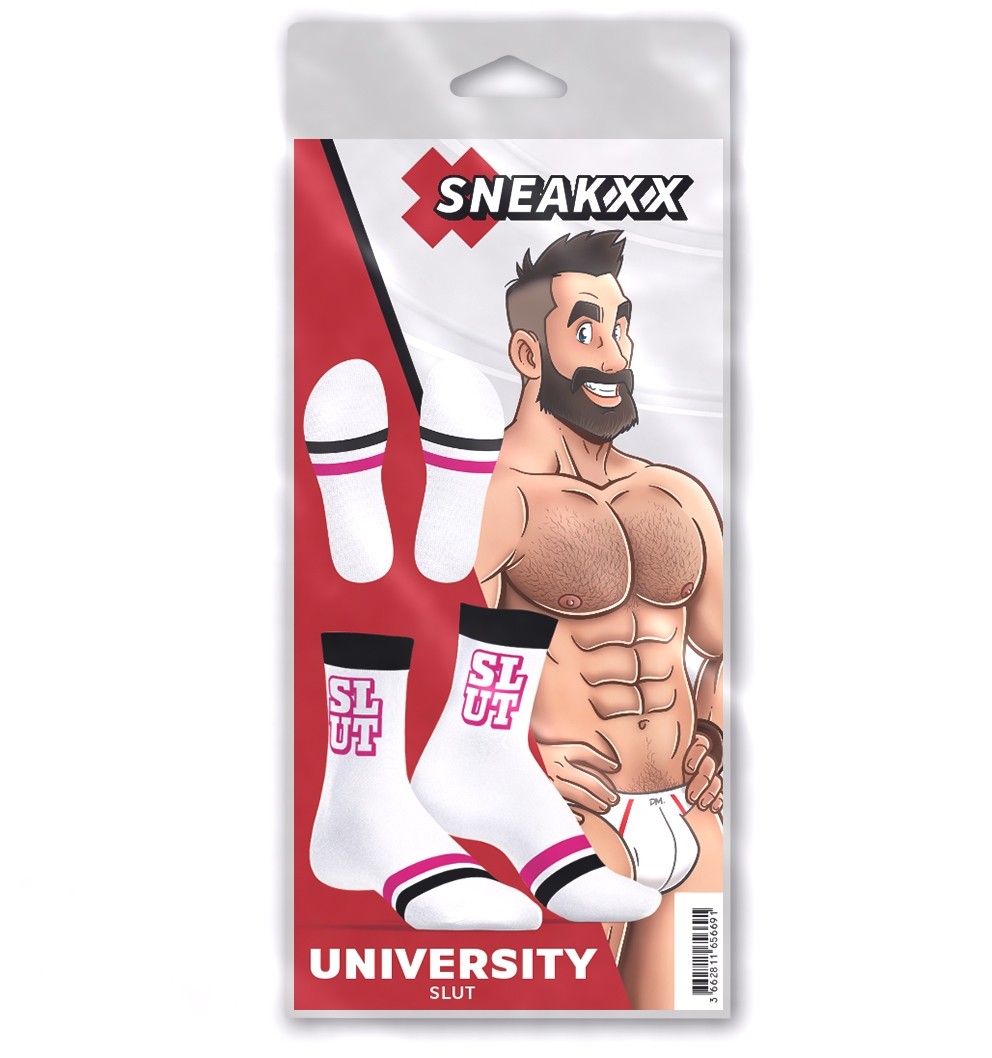 Fetiš ponožky od SneakXX si okamžite zamilujete. Mäkká podšívka udrží vaše nohy v pohodlí v každej situácií a provokatívny nápis upúta pozornosť každého okolo vás.