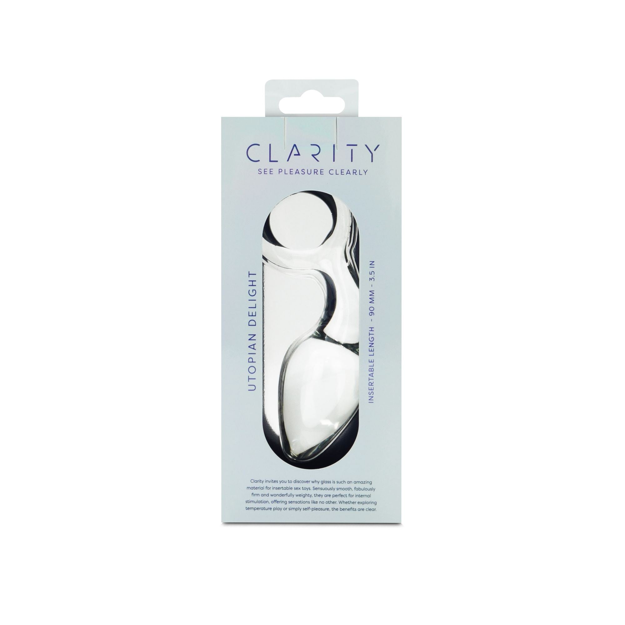Sklenený análny kolík Clarity Utopian Delight vyniká premysleným dizajnom, ktorý spája komfort, kontrolu a presne zameranú stimuláciu. Úzka špička zaisťuje plynulé zavedenie, okrúhla rukoväť uľahčuje manipuláciu a jemne zahnutý krček pomáha lepšie zacieliť na prostatu. Výsledkom je vyvážený zážitok, ktorý ocenia začiatočníci aj skúsenejší používatelia.